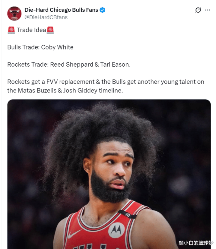 公牛媒体也希望得到伊森,因为火箭队的范弗利特赛季报销火箭队很需要一个一号位,公牛愿意用怀特换谢泼德+伊森,火箭可以得到一个合格的先发一号位。(我认为这是打劫)