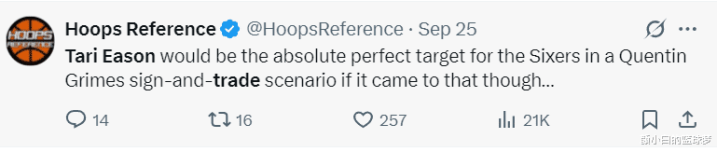 其实在几天之前,联盟中就已经有媒体收到风,他们认为小贾都跟火箭达成提前续约许久,但伊森却迟迟没有反应,大概率是跟火箭的续约谈判陷入僵局。美媒Hoops Reference就表示,如果火箭要交易伊森,那么费城用格兰姆斯换他是一个很好的方案。