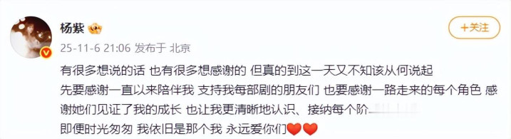 昨天,是杨紫33岁的生日,她在生日配文中写道:“我依旧是哪个我,永远爱你们”。